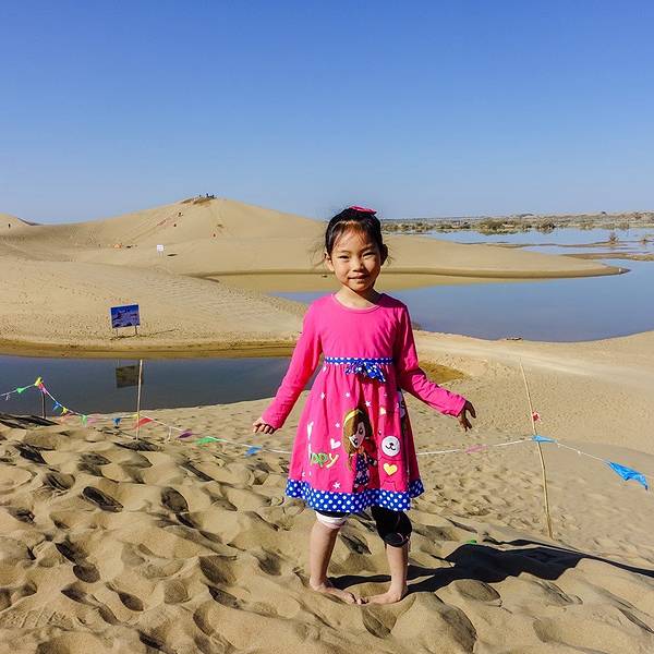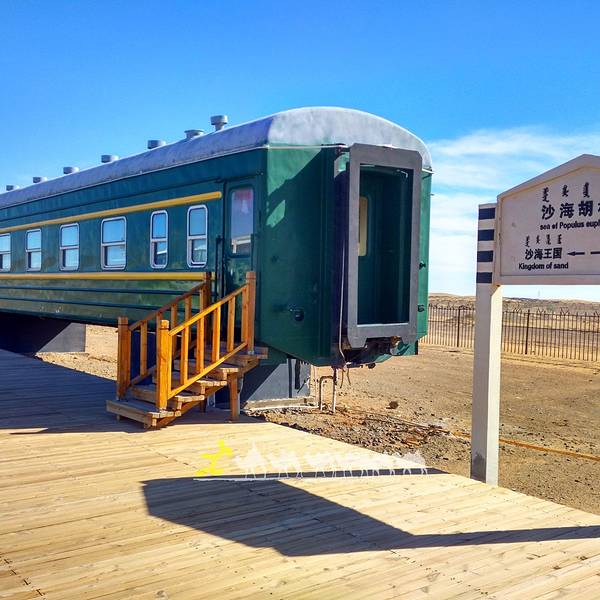 八道 桥是胡杨林景区最后一道风景线,有大型停车场和小吃街,也有唯妙唯俏的火车旅馆。此处同样可以租鞋套,不过要交提金,比鸣沙山多了一道手续。款式一样的。不过我们都经历过鸣沙山的,这已经没什么好防沙的,伙伴赤脚上阵,沙子柔细,没有烫脚的感觉。沙漠边缘还有一个碧蓝的湖,湖中间还有小屋,高处看下去何其诗情画意的事! 展开