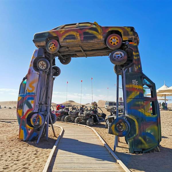 公园门口的大型沙雕。沙漠吉普冲沙,玩的就是心跳,俯冲而下的感觉特别刺激,尖叫吧事实证明这样的决定是明智的,早上的八道桥沙漠公园没有什么人,小芯的同学带我们玩了沙漠吉普,然后爬沙山。这是我第二次进入沙漠,和第一次在在迪拜玩沙漠吉普一样HIGH。八道桥的沙漠公园位于巴丹吉林沙漠的边...事实证明这样的决定是明智的,早上的八道桥沙漠公园没有什么人,小芯的同学带我们玩了沙漠吉普,然后爬沙山。这是我第二次进入沙漠,和第一次在在迪拜玩沙漠吉普一样HIGH。八道桥的沙漠公园位于巴丹吉林沙漠的边缘,原计划在后面的几天去右旗深入巴丹吉林沙漠腹地,后来考虑到独自一人的安全性还是取消了行程。 展开