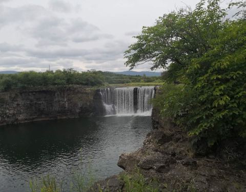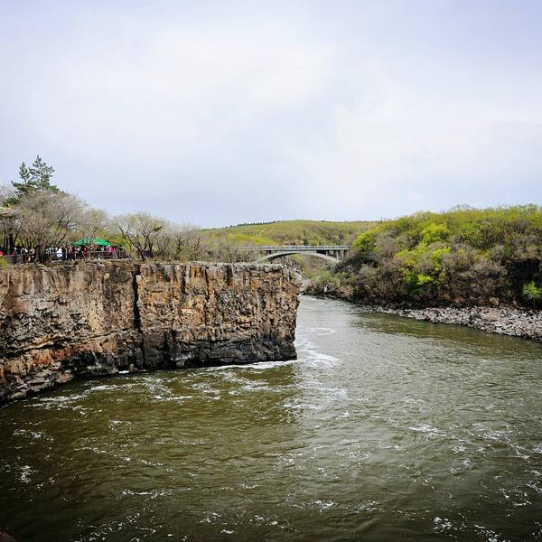 吊水楼瀑布是牡丹江市宁安市镜泊湖风景区内的一个重要的看点,就在大门进去不远处,瀑布口与地面持平...吊水楼瀑布是牡丹江市宁安市镜泊湖风景区内的一个重要的看点,就在大门进去不远处,瀑布口与地面持平,水流流入下方河道,看上去还是有点壮观的。