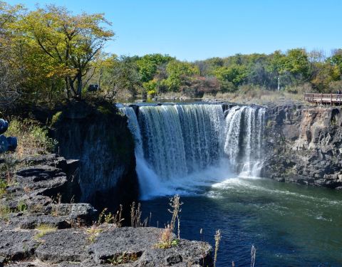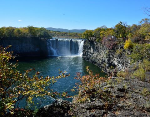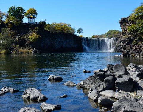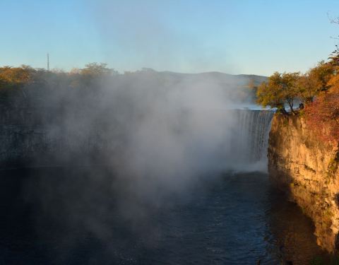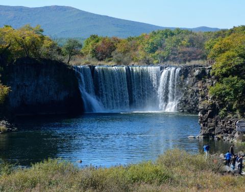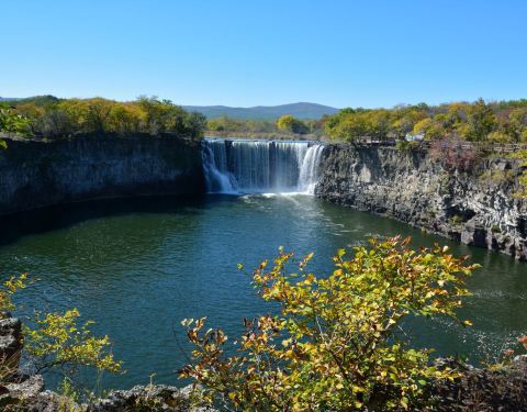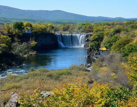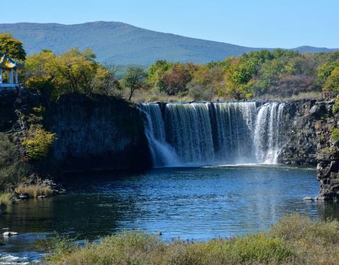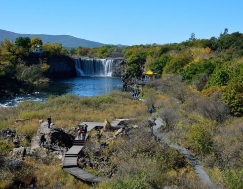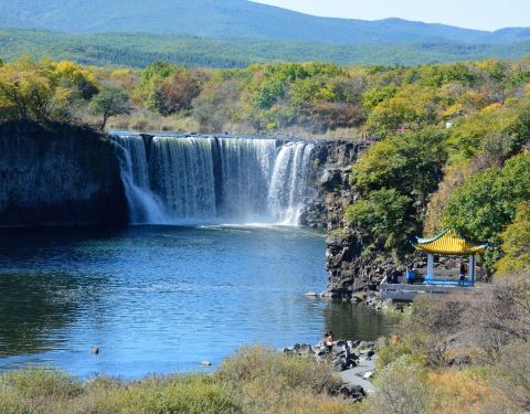 游客们可以在东面的观瀑台欣赏这一壮景,像是来到了仙境瀑布有300多米之宽,20多米的落差,呼啸而下的水流融入黑龙潭中,发出巨大的响声,宛如雷鸣。游客们可以在东面的观瀑台欣赏这一壮景,像是来到了仙境。