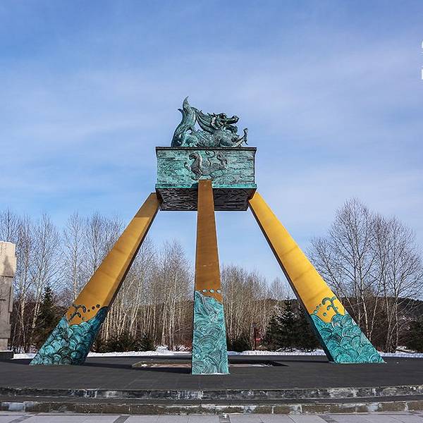 我找着北了!在黑龙江,最北就是望得见对岸的一条大河。中国元素的龙形印玺,四根支柱分指东南西北,四面分刻青龙白虎朱雀玄武这些四极神兽...在漠河,还有一处最出名的合影石,它就坐落于北极沙洲这个超大景区里。