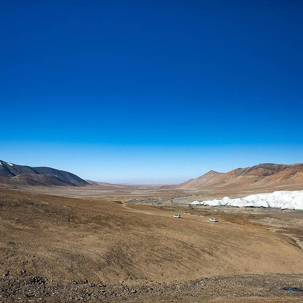 普若岗日冰川属大陆性冰川,整个冰川河谷中的粒石不是很大,所以越野车可以前行到冰川末端。同时由于我们来的这个季节冰川消融不大,所以河谷内河流的水量也较小,行车比较顺利。