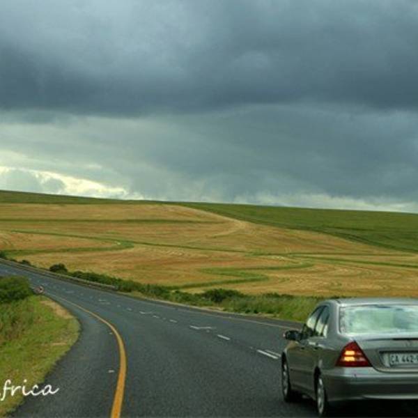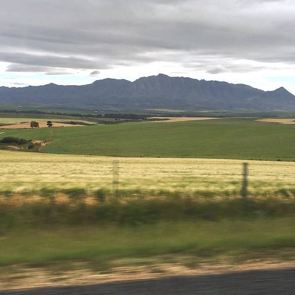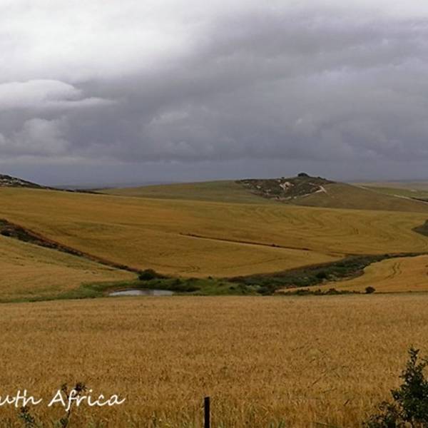 从swellendam小镇出发,有一段远离海边的田园风光,大片大片的麦田和禾草野花相间,配上高低起伏的丘陵地势,一幅宏大画卷在眼前铺开,向远处无限延伸。