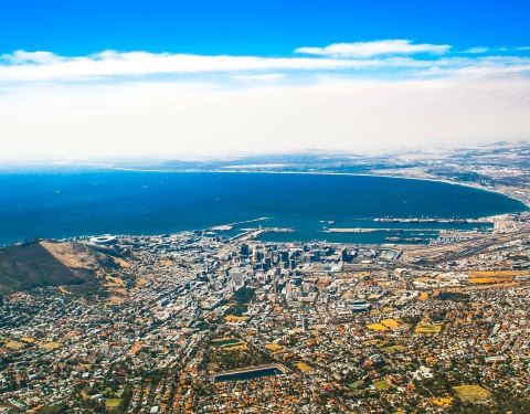 山顶如桌般平坦的桌山是开普敦的地标及象征。 坐360度旋转缆车上山,可全方位欣赏开普敦市区景色。 在山顶可俯瞰桌湾、罗宾岛,以及美丽的天际线。
