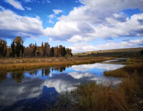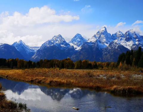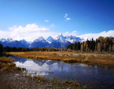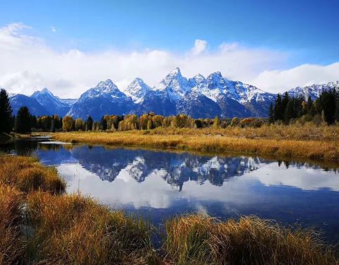 大提顿国家公园秋色,蓝天白云,雪山溪流,秀美壮丽!这里是我的最爱
