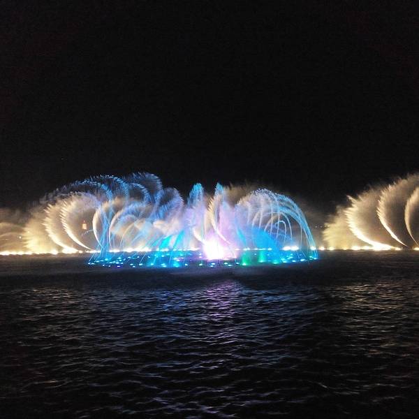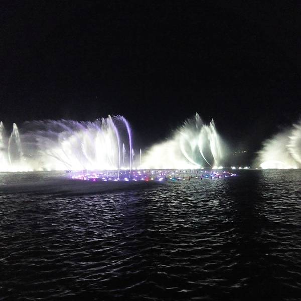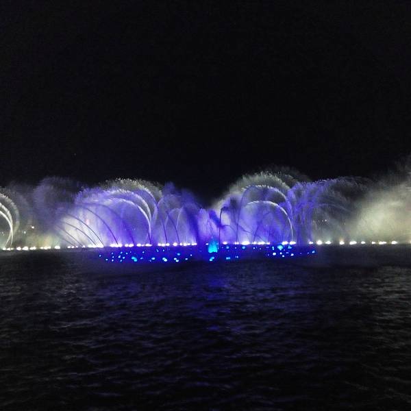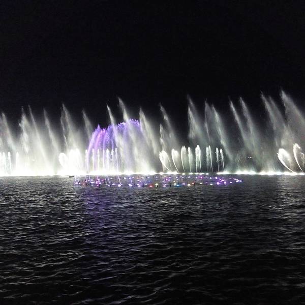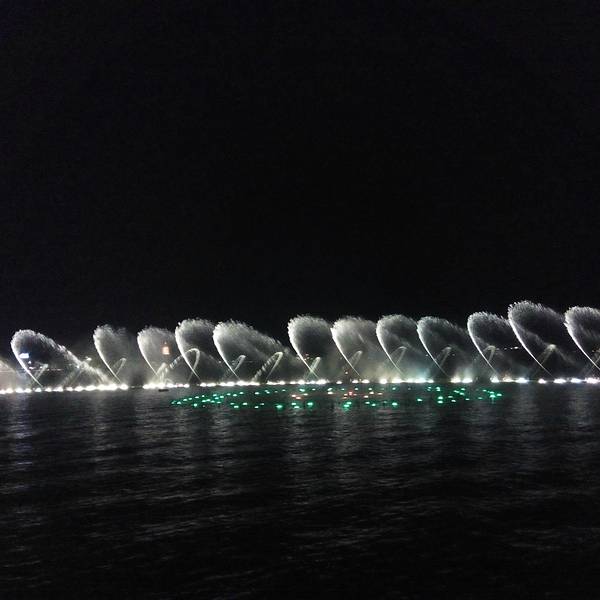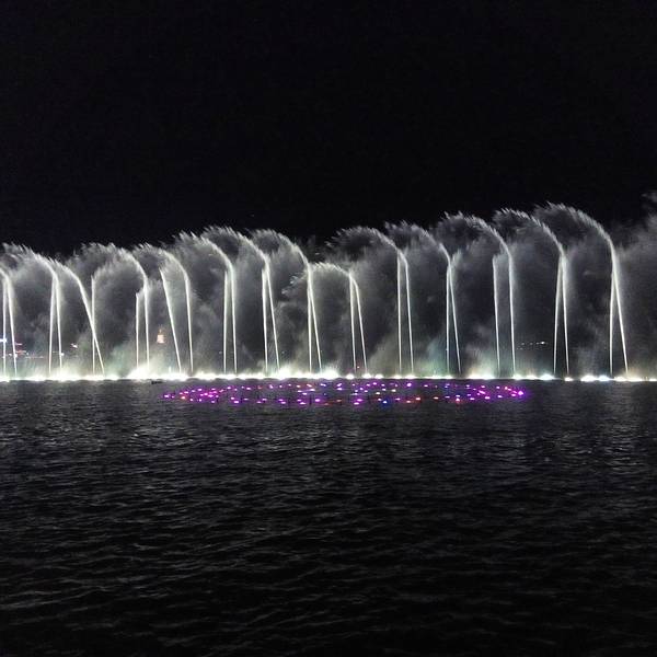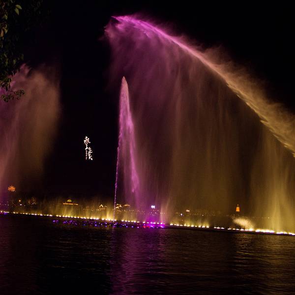 当夜幕降临之时,平静的湖面会忽明忽暗,伴随着优雅悦耳的音乐声音进入耳里,随之而言的就是颇为壮观的彩虹灯喷泉了。喷泉在同一时间段不断的更换颜色,五颜六色的喷泉光芒的变换,确实给游客带来了很多夜上西湖的视觉大餐!不错,很值得推荐的!
