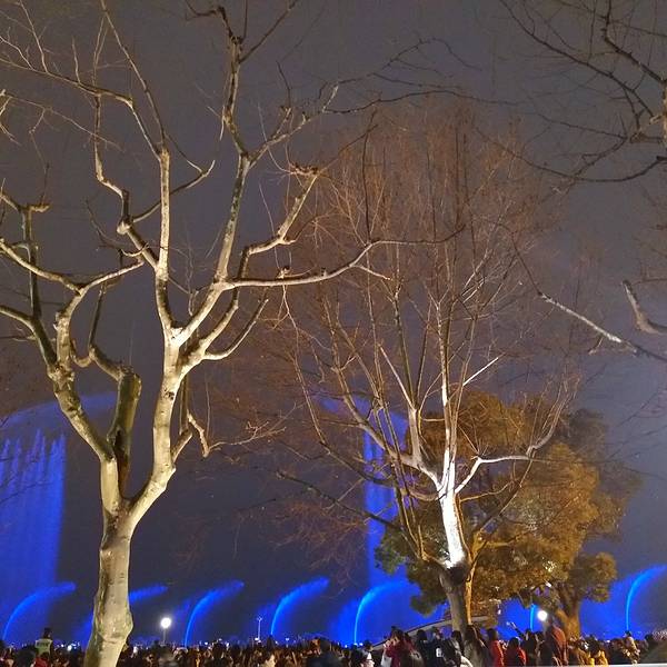 去外婆家吃饭,吃撑了,打车到了西湖边,正好赶上最后一场(晚9点)音乐喷泉~