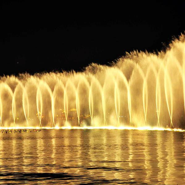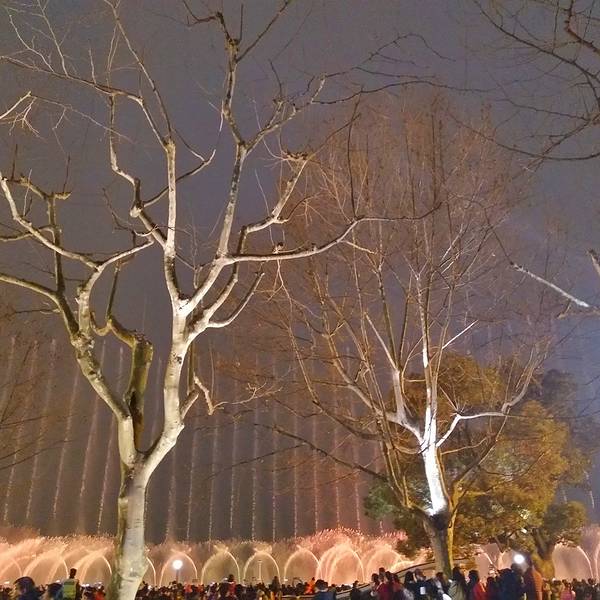 喷泉加音乐加人们的欢呼,场面非常壮观,很值得一去从西湖坐公交车到音乐喷泉的地方,每天19:00,20:00各一场,每场持续15分钟左右。喷泉加音乐加人们的欢呼,场面非常壮观,很值得一去。