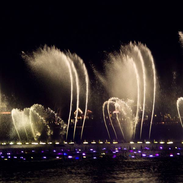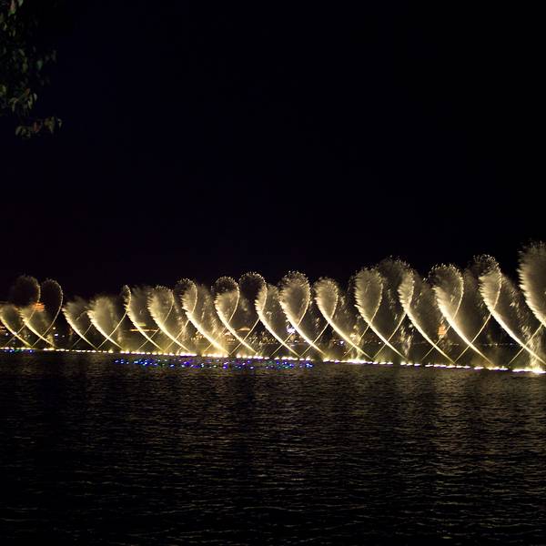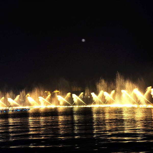 西湖水上美轮美奂的音乐喷泉,夜游杭州的推荐选择。