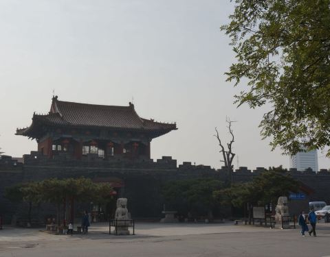 继续直行,就到了岱庙,此时已近18:00,经询问岱庙售票处,景点18:30关门,于是在岱庙正门的马路对面坐环线公交车回酒店,明早先游岱庙,中午出发去曲阜三孔半日游。
