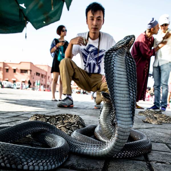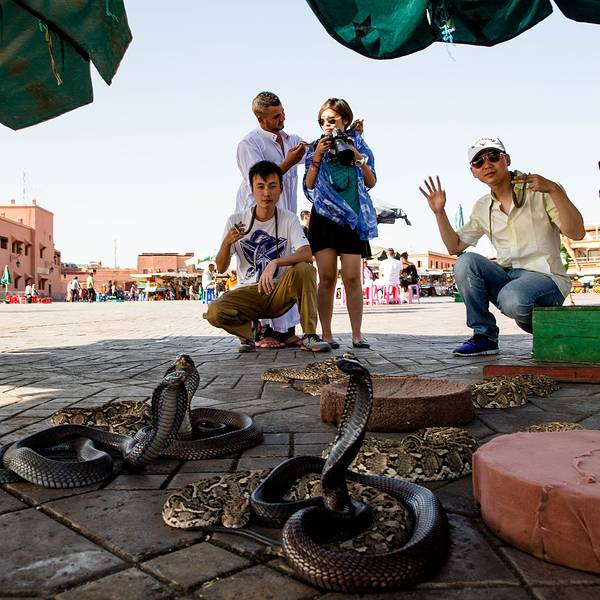 ...眼镜蛇才明白埃及图腾上为什么有那么多眼镜蛇,并且眼镜蛇在埃及图腾中是保护者守护神的意思太霸气了马拉喀什最负有盛名的广场德吉玛大广场,在这里你可以看到各种各样的艺人说书的,舞者,耍蛇者,杂技,卖水人,商贩,热闹非凡.
