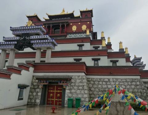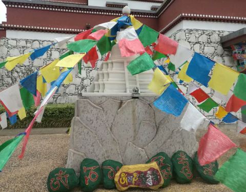 五印坛城所在位置,与灵山梵宫、曼飞龙塔交相辉映,这是一座风格独特,原汁原味的藏式文化景观所在五印坛城所在位置,与灵山梵宫、曼飞龙塔交相辉映,这是一座风格独特,原汁原味的藏式文化景观所在。城内饰圣洁而绚丽,有各种彩绘、壁画、木雕、唐卡、壁饰、镀金等藏族装饰技艺。