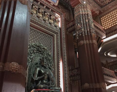 ...只看大佛和梵宫,进五印坛不用排队,里面展示了藏教文化,雕刻很精美,说是模仿布达拉宫的,值得一看国庆,人确实不少,但旅行社好像只看大佛和梵宫,进五印坛不用排队,里面展示了藏教文化,雕刻很精美,说是模仿布达拉宫的,值得一看