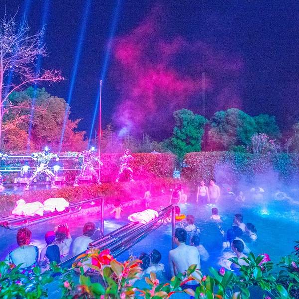 ③潮秀:边泡温泉边看演出,简直不要太棒!疯狂的小丑🤡、阿波之礼、玛雅风情秀、酷炫电音秀等精彩轮番上演,不可错过;