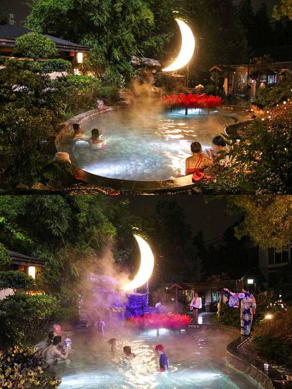 ②潮拍:云曼温泉的和式建筑非常适合拍照,在灯光和水气的渲染下颇为梦幻。温泉内提供有和服浴袍、纸伞、头饰等可以换装,记得带上手机或者相机和小姐妹一起拍照打卡呦~