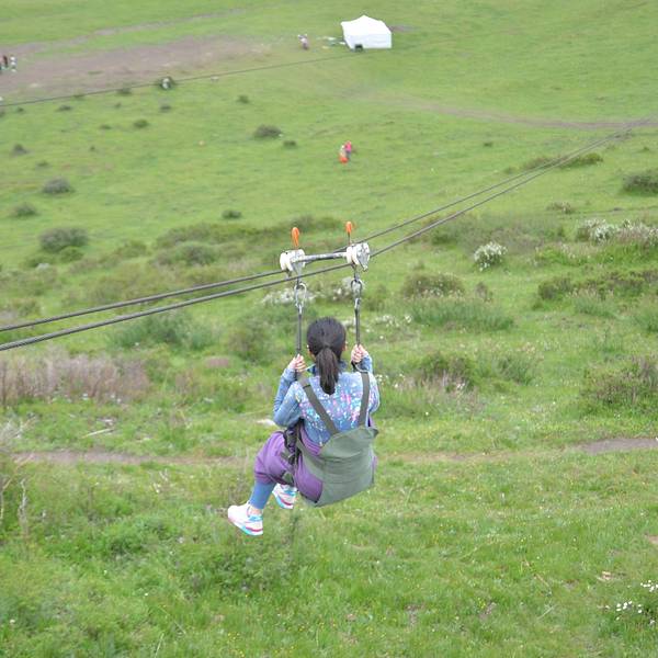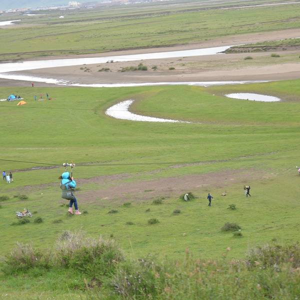 我们是早上9点多到达月亮湾的,景区标示不是特别明显,在很小的一个分岔路口标着一边走向成都,一边走向月亮湾。景区不需要门票,不过要收10元停车费。有一块大石头上雕着月亮湾几个字,很多游客在石头前留影。景区门口有人卖风干牦牛肉和水果干,牦牛肉干好贵,感觉太干了没肉味,我不太喜欢,看到有人买,一口袋而已,七八百。水果干25元一斤景区里面还有漂流和溜索项目,漂流60元一次,溜索40元一次。我们去的时候是端午期间,漂流还没有运行,好像要七八月才有,溜索玩的人倒是挺多,需要排队呢。溜索滑得很快,还是有点刺激,有人脚的姿势没对,结果卡在半途中了,好搞笑。景区里有个观景台,就是在高处能一览月亮湾全貌,源源不断的游客到观景台来拍照。红原草原的美在月亮湾发挥得淋漓尽致,在一片开阔的草地上,白河呈“s”型蜿蜒流过,如同天上的一弯新月,故而得名“月亮湾”。近处绿草茵茵,远处重峦叠嶂,伫立在河边的马匹,悠闲地吃着青草,摆着尾巴,草原更显得格外静谧。其实我真是没看出来哪里像月亮,倒是很多弯弯的溪流就是啦 展开