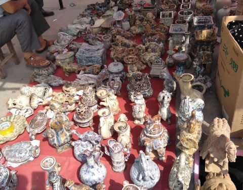 在河南禹州的神垕古镇简直就是钧瓷的海洋,这里到处都是钧瓷,此外还有仿古铜器,但看那些器物,就好像穿越到古代王朝,估计拍电影的都会到这来拿货!