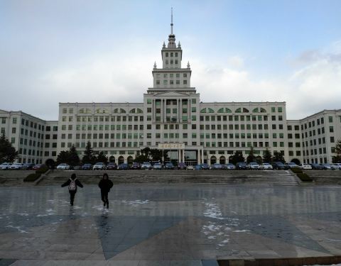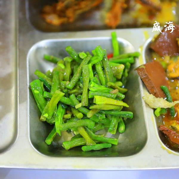 威海分校的主楼,和哈工大本部的主楼真的很像,都是俄式建筑,只是本部的主楼更加巍峨而已。到学校的时候已经是傍晚六点了,我决定到威海分校的食堂去看一看,好久没有吃学校食堂了,想感受一下。开车七拐八拐终于停到了食堂门口,食堂有三层,最上层是小炒,下面两层的是学生食堂,十一期间,小炒部门停业,只能吃学生食堂。