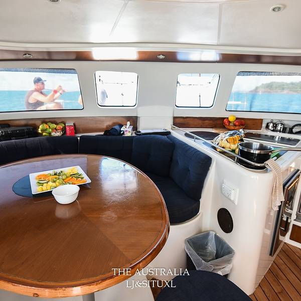 金骆驼 此帆船只接待8位客人,且必须是夫妻或情侣,不接受儿童,因为要保证船上客人的安静度假享受经过2个多小时的飞行过程,马上就到达大堡礁机场了。我们今天不入住酒店,下午直接登船~