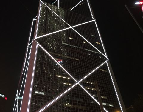 维港边的标志性建筑,贝聿铭事务所设计,形如竹子寓意“节节高升”。