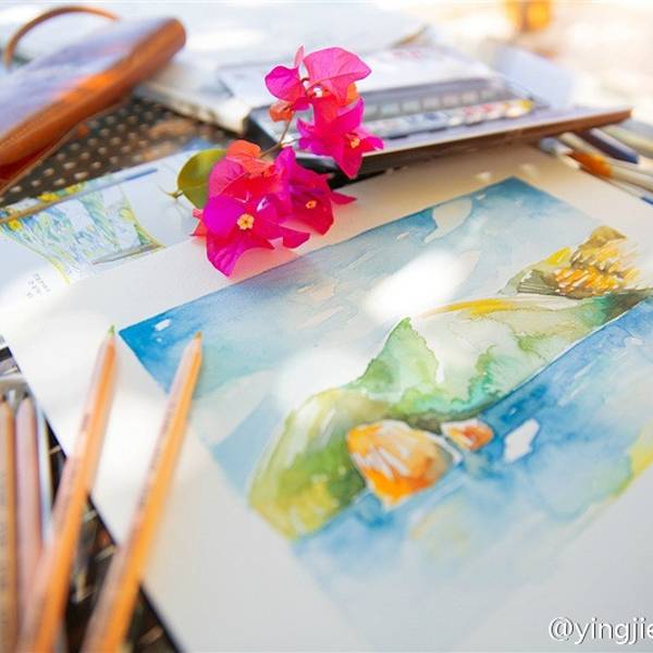 灵感印记,清晨是写生的好时候,在海浪微风伴随中手绘了一张三亚小景图,感谢自然赋予的阳光与沙滩,让我在美妙宁静中完成了作品。