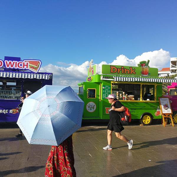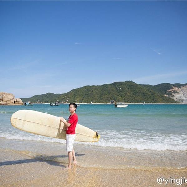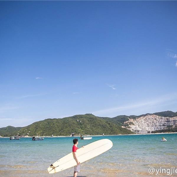 - 以免遗憾,临走前学习了一下冲浪,教授冲浪的老师竟然之前在重庆读大学,真是缘分。蜈支洲码头的街道