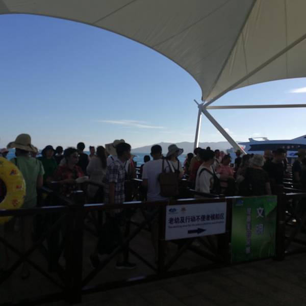 - 在购物中心逛了两个小时之后,我们乘坐海棠湾1号线来到了蜈支洲岛的码头,通过酒店的VIP通道上了快艇