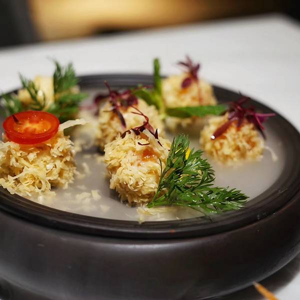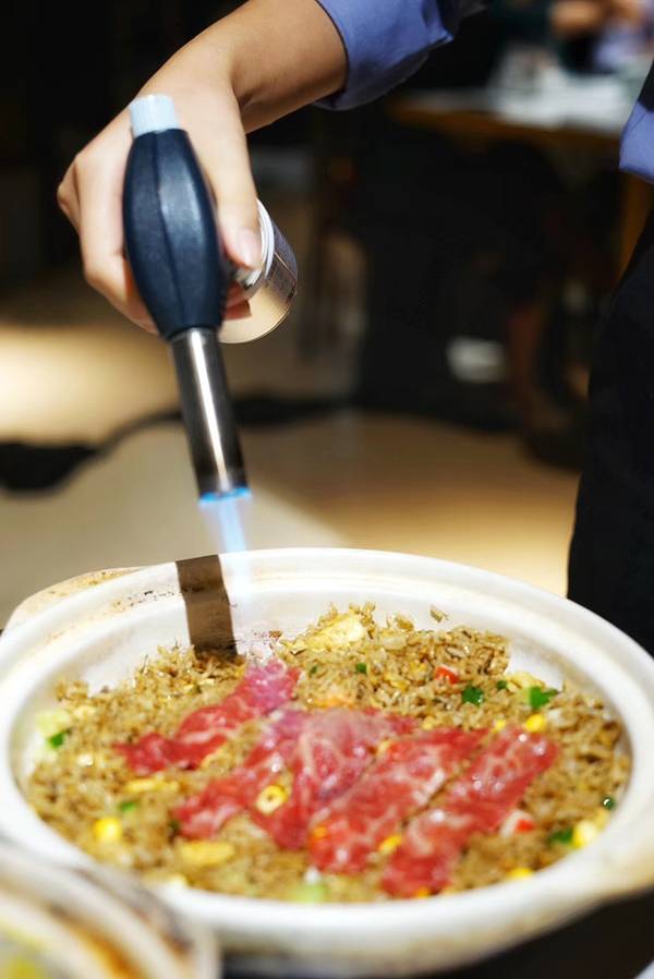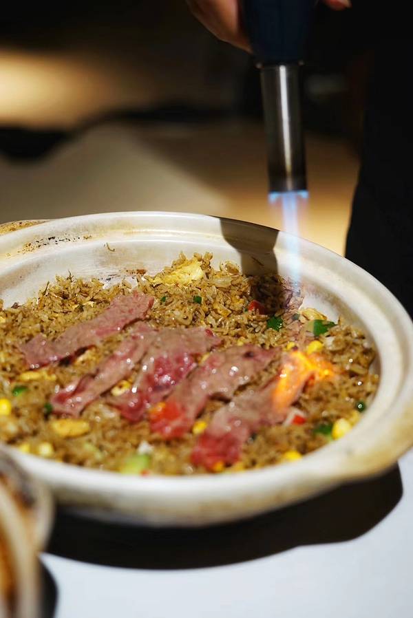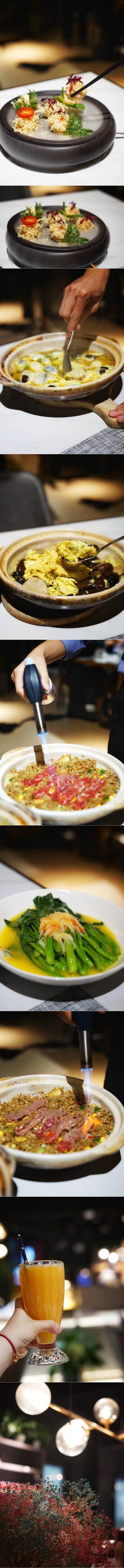 牛油果芥茉虾球,选料实打实,入口有鲜虾的弹牙,同时还有牛油果的独特清爽味道,入口有交错感,一口停不下。雨花石烹黑松露土鸡蛋更是让人惊艳,加热好的雨花石碰上来,倒入搅拌好的黑松露与土鸡蛋,就在石头上滚熟,吃起来格外的香甜!要知道,那松露加热后,散发的味道让人边醉呀!火烧和牛梅菜饭全五星推荐,小姐姐上来会问要几分熟,这是高档日料餐厅才有的现场火炙,之后将细美的和牛烤熟,与炒菜一起搅拌,真的吃起来停不下!饮品我一定推荐果汁,不加水,18元一杯,良心!这么优雅的餐厅,喝到如此美味,真的要哭的冲动!