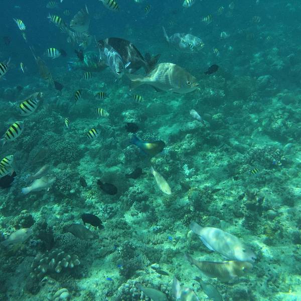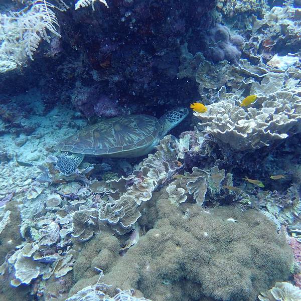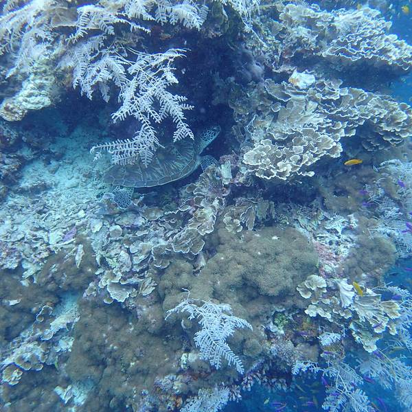 附近浮潜的人特别多,因为第一天到还不太敢自己下水划,只敢呆在船的附近,好在我们船的小黑挺好,带着我们每个人都去大断层看了看,真的是很深很壮观,如果能潜水下去的话应该更加的震撼。水质还是很清澈,也看到了大海龟。