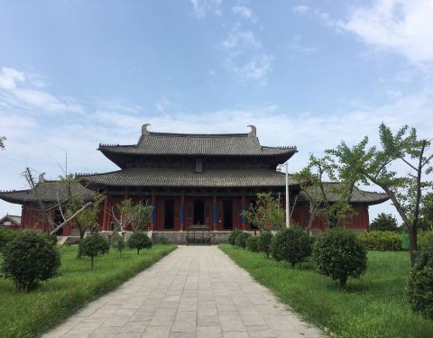 整个商丘古城最不值得一去但是又得去的景点就是应天书院了。应天书院位于商丘古城的东南侧,从古城南门出来后,穿过护城河南堤到达一个十字路口,然后向东步行就可以到达,不过距离稍微有点远,骑自行车的话也骑了将近10多分钟,结果千辛万苦达到的应天书院却让人失望。应天书院为宋代四大书院之一,现有建筑完全是现代人仿古建造的,门票20元。大门前有一座拱桥,站在拱桥上可以俯瞰院内,结果除了大门什么也看不到,大门上写有“应天书院”几个字,一看就是瘦金体,进入大门之后,这个院子空空如也,只有一座大殿,大殿是重檐歇山建筑,殿内也无非就是一些仿古摆设和书院介绍,出了大殿就是一个空院子了,据门口的建筑规划看以后这里将雄心勃勃的扩建,届时是否还会另人失望呢,这不得而知,只知道门票是一定会涨的。