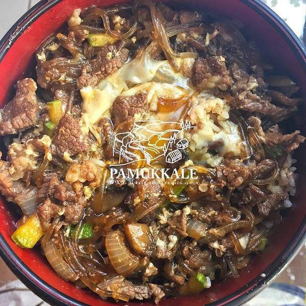 进入店面,迎面来了一位小男生,他居然用中文向我们问好!!!然而我们的挑夫许还在用英文回答,小男生仍旧用中文继续对话提问,正当小许想用英文回答时,被我们集体吐槽,拦住了。好好说中文,别秀了。去棉花堡前,得先解决午餐,小桐子没有找到 white house,最后我们就近去了旁边的 lamuko‘s lokanta,其实这家日本餐厅对面便是 white house 了。好喜欢夫妇的这张合影我的寿喜牛肉盖饭,那么多天吃不习惯,遇到这熟悉的米饭,熟悉的口感,还有粉丝儿,好幸福