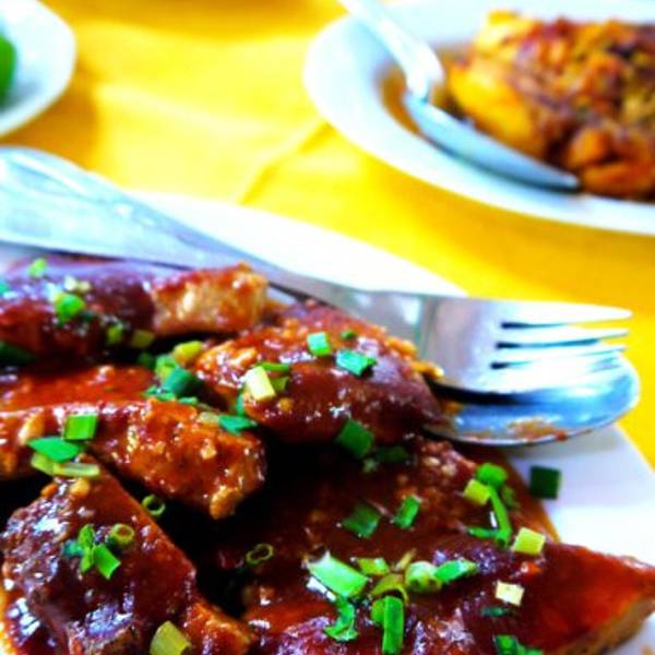 既然是餐厅,就说说这里的菜吧。芒果沙拉(此道菜肴获得了众口一词的称赞,当地的芒果口感不是很甜,所以适合做沙拉,所以如果我们用国内芒果的口感揣测当地芒果沙拉的口感,是无法想象它的清爽的)木瓜沙拉(因为芒果沙拉的出挑,它委屈的被打入了冷宫,忘记了它是什么味道啦)炖菜(类似祖国家常菜的口感)鹦鹉鱼糊(我已经忘记了味道,虽然是当地一款名菜,其实就是一般炸鱼的感觉吧)金枪鱼排(虽然香料用了很多,但是并不入味,全餐的肉菜口感都不能算是惊艳,但是绝对够特别)炸茄子(因为在热带,许是气温的关系,我们更喜欢吃蔬菜而非肉类,此菜也颇受欢迎)茄子咖喱鸡(对我们来说肉菜都太腻了。。。吃不下,浪费哦)加上米饭和辣椒酱,我们这一餐总的费用在20欧元左右,足够4-6个人吃的,我们三个女孩儿吃,剩了至少一半,尤其是肉类菜肴,实在是难以下咽,不是口感的问题,许是热带的气候让人更愿意吃清爽的DD。需要说明的是,酒水需要单点,当地的习惯是无论何种就餐形式,酒水都是需要单点的,自助也不例外。
