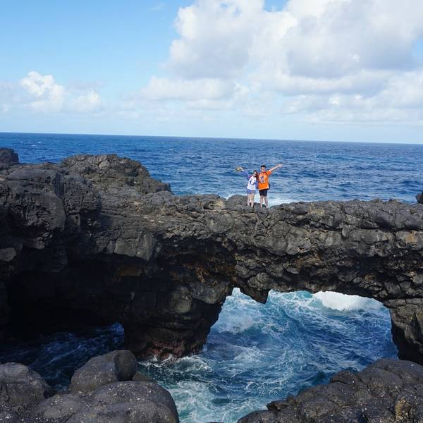 实用 站在自然桥“桥梁”的那一刻,会觉得一切的努力都没有白费,如此震撼人心的画面,让我们非常的兴奋自然桥位于毛里求斯岛南部海边,是很壮观的一座桥。自然桥实际是一块巨型的黑礁石,经过海水的冲击自然形成了一座桥,自然桥是毛里求斯旅游必去的景点之一,这里的岩石都是火山岩,景色让人极为震撼。即将到达自...自然桥位于毛里求斯岛南部海边,是很壮观的一座桥。自然桥实际是一块巨型的黑礁石,经过海水的冲击自然形成了一座桥,自然桥是毛里求斯旅游必去的景点之一,这里的岩石都是火山岩,景色让人极为震撼。即将到达自然桥的时候,会有大片的甘蔗林,车子就是行驶在甘蔗林中的道路中。自然桥是一个免费的景点,没有建设过,所以车辆基本都是停在自然桥前方的一片树林里。走到自然桥的路很崎岖,有些石块的边缘很锋利,要特别注意安全,和我们同行的小伙伴就被划伤了一道口子,因为毛里求斯是海岛国家,很多游客游玩的时候都是穿着拖鞋,要知道,这里的地面坑坑洼洼,穿拖鞋非常难行走,不要太急于走到桥中央,安全第一。 展开