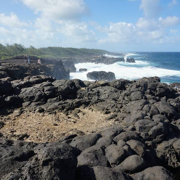 自然桥位于毛里求斯岛南部海边,是很壮观的一座桥。自然桥实际是一块巨型的黑礁石,经过海水的冲击自然形成了一座桥,自然桥是毛里求斯旅游必去的景点之一,这里的岩石都是火山岩,景色让人极为震撼。即将到达自然桥的时候,会有大片的甘蔗林,车子就是行驶在甘蔗林中的道路中。自然桥是一个免费的景点,没有建设过,所以车辆基本都是停在自然桥前方的一片树林里。走到自然桥的路很崎岖,有些石块的边缘很锋利,要特别注意安全,和我们同行的小伙伴就被划伤了一道口子,因为毛里求斯是海岛国家,很多游客游玩的时候都是穿着拖鞋,要知道,这里的地面坑坑洼洼,穿拖鞋非常难行走,不要太急于走到桥中央,安全第一。