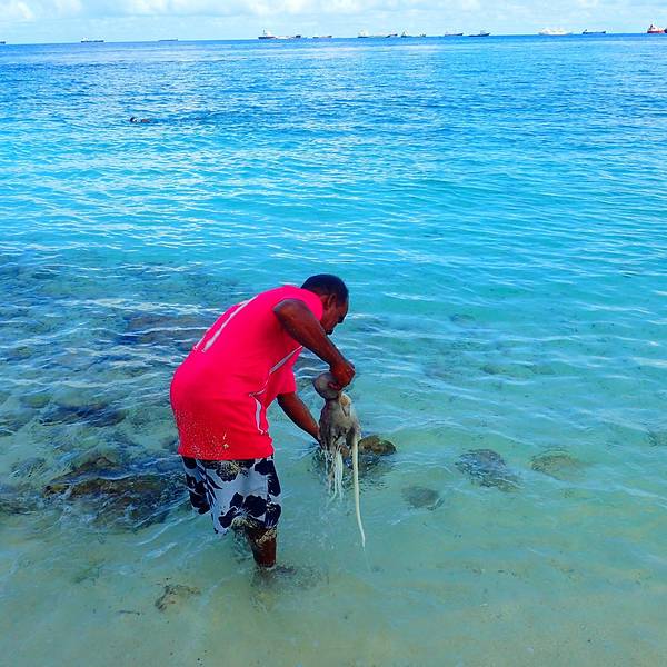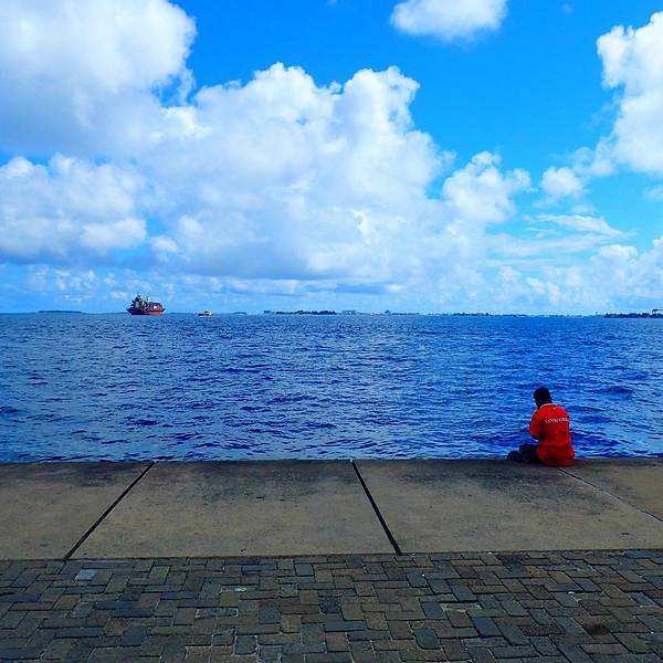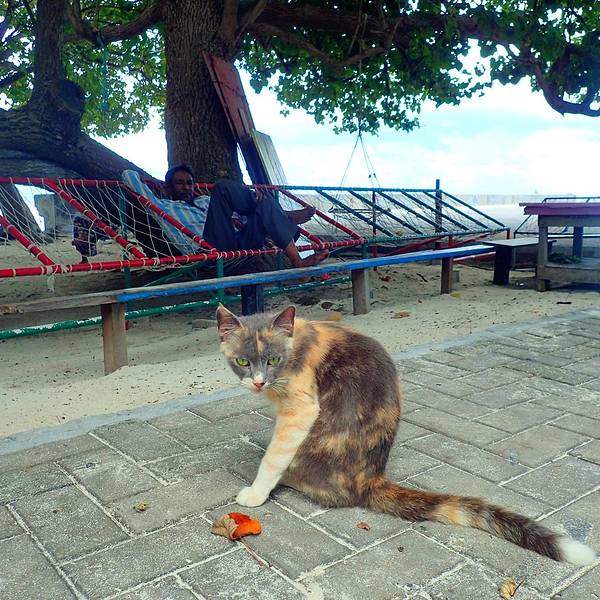 对面的一个岛屿正在下雨,我们这里却是大晴天。居然有蜥蜴,跑的超级快,一眨眼就消失不见了坐轮渡从马累到Vilingili(也有说叫Viligili)大概十分钟,但是两个岛真是天渊之别啊!马累很拥挤很吵闹有很多人,而Vilingili则是一个很宁静的小岛,这里没有高楼,没有汽车,没什么人……