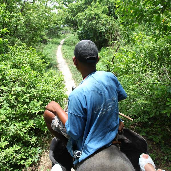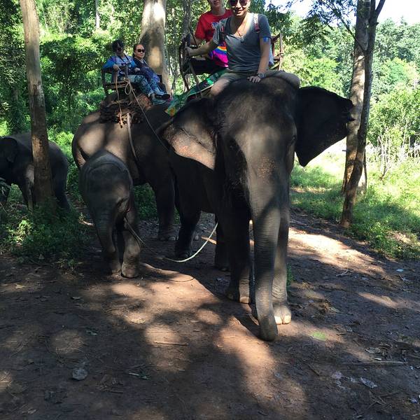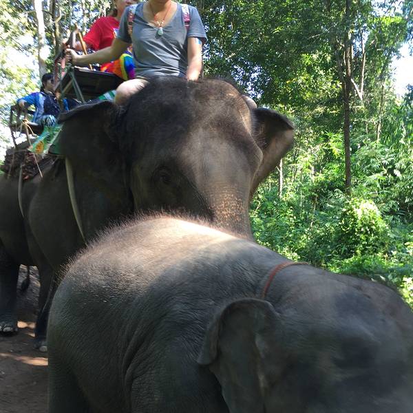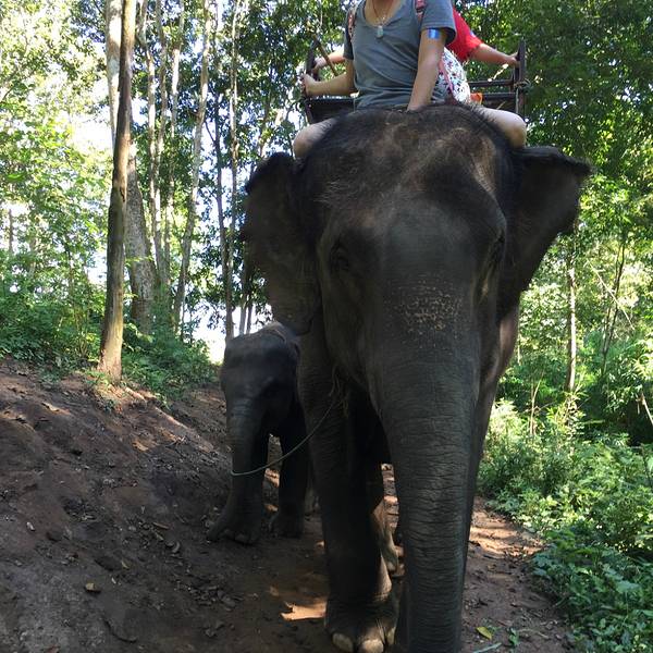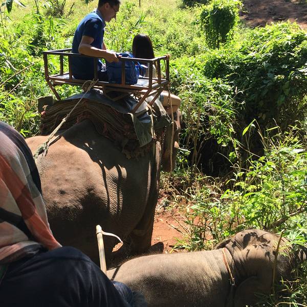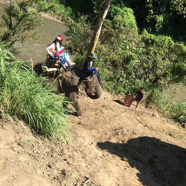 骑上大象后,训象师会引导大象按照指定的路线走一圈,指定路线包含过河,原始丛林以及香蕉园,中间训象师还会主动爬到树上给游客照相,当然小费是必不可少的。整个骑象过程大约会耗时15-20分钟,不长不短,很有特色。