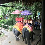 上座位时,训象师会将大象停在一个与象背平齐的平台旁边,客人从隔壁的楼梯抵达平台后,踩着象背进入座位,当客人坐好后,训象师会插上座位前方的铁销子,以保证安全。正常情况下,每个座位上会坐上两个成年人,当然有时候也会根据情况安排一人单独乘坐。