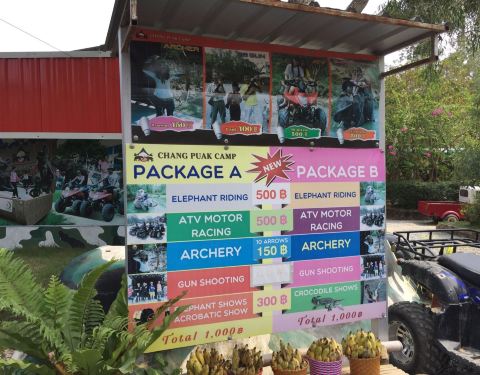 常普克大象营骑象,大象绕场一周的费用是500泰铢。游客可以自费50泰铢购买食物喂大象。而最终骑象后,还需要给训象师50泰铢的小费,因此一圈整个下来花费600泰铢,折合人民币120元。