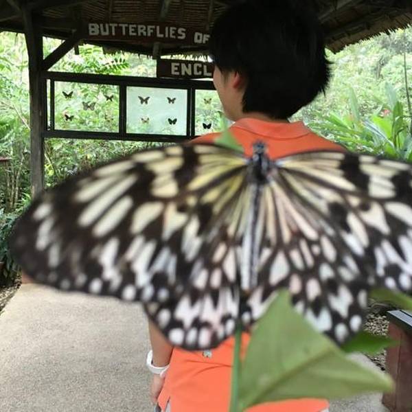 35P的门票,看看毛毛虫、蝴蝶标本和活蝴蝶陆路还有一个看蝴蝶的地方,好像没什么特别,但让我和老婆都感到是意外的收获。35P的门票,看看毛毛虫、蝴蝶标本和活蝴蝶。难得的是全程都有一个解说员很认真的和我们讲解,帮我们拍照,还让我们拿着标本框像上台...陆路还有一个看蝴蝶的地方,好像没什么特别,但让我和老婆都感到是意外的收获。35P的门票,看看毛毛虫、蝴蝶标本和活蝴蝶。难得的是全程都有一个解说员很认真的和我们讲解,帮我们拍照,还让我们拿着标本框像上台领奖一样拍照……解说员还会捉蝴蝶放在我们的头上或手上拍照,当我们想拍不同的蝴蝶时,他还会很认真的去帮我们找蝴蝶……本来以为他一定会要小费或者强行推销纪念品的,结果完了就是完了,他什么也没要,只是很有礼貌的感谢我们光临,这是让我们最意外的。 展开