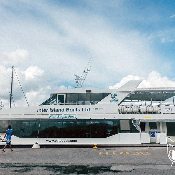 从马埃岛到拉迪格大概1个半小时的行程,一路上的风景每一眼都不一样,伴着太阳一点点沉向海底要坐的船长这样儿~一楼是经济舱,二楼是头等舱,虽然二楼视野好,但是……没空调!敞开了吹!晒成狗!想问问船运公司的人,你们对头等舱是不是有什么误解???经济舱的座位酱紫一排排很干净,设有简易的水杯放置...要坐的船长这样儿~一楼是经济舱,二楼是头等舱,虽然二楼视野好,但是……没空调!敞开了吹!晒成狗!想问问船运公司的人,你们对头等舱是不是有什么误解???经济舱的座位酱紫一排排很干净,设有简易的水杯放置架,靠窗的两边是相对而坐的,中间有个小桌板,没有座位号,先到先选,果断占领靠窗的位置~这会儿已经是临近落日了,窗外的港口都是回家的渔船,告别了昨天雨季的最后一场大雨,马埃岛的天气超好。(想到昨天暴雨中逃难一样的圣安妮海洋公园之旅,差点哭出声来)准点出发,船舱里居然还播放起了周星驰的《功夫足球》…从马埃岛到拉迪格大概1个半小时的行程,一路上的风景每一眼都不一样,伴着太阳一点点沉向海底。 展开
