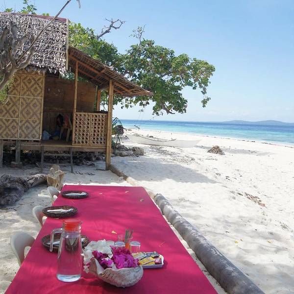 非常疲惫又开心的一天,相比后面几天的潜水,这一天的经历太不一样,童年的美好给这次菲律宾之旅增添...相比巴里卡萨岛岛热门,网上对帕米拉坎岛的介绍很少。从阿罗纳海滩到达海岛大概需要2个小时,一艘螃蟹船最多做8个人的样子,我们7个人刚刚好。上图是海滩边的休息棚,背后有更换衣服的房间和厕所