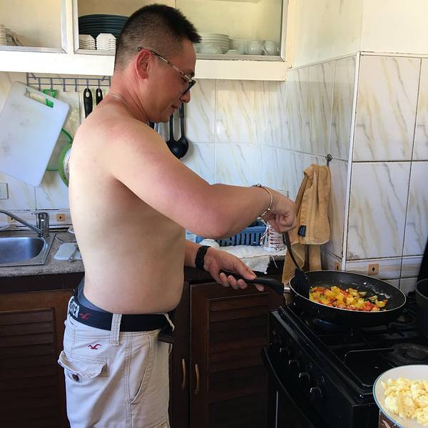 由于昨晚喝的有点多,呕了几次,早上醒了胃超级难受啊,整个人都不好了,房间也没水了,我的杯子里还有点柠檬水,因为太渴喝了点,结果更加难受了,唉,自己学医的都不知道吗,早上胃里很多胃酸吗,还喝柠檬水,...由于昨晚喝的有点多,呕了几次,早上醒了胃超级难受啊,整个人都不好了,房间也没水了,我的杯子里还有点柠檬水,因为太渴喝了点,结果更加难受了,唉,自己学医的都不知道吗,早上胃里很多胃酸吗,还喝柠檬水,哎哎~此时的我甚是想念家乡的汤米粉,皮蛋瘦肉粥~炒鸡想回家的说,哎,元气大伤,即使这样,我,还是画了个美美的妆👄😊。有个buddy汪精卫今天要离开薄荷了,他来找我们和我们一起骑摩托车去市里的超市,我们打算中午自己煮饭吃,一去到超市我就问服务员有卖汤米粉的吗,服务员很热心的带我去,一看到那包汤粉,瞬间好感动的说,买完菜我们就骑摩托车回酒店了,跟那个肥婆管家商量了半天300P借厨房给我们煮饭。我跟笑笑煮,炫炫洗,我煮的coke🐔超级好次,好美味,第一好次😋😋😋我们送走了汪精卫,不知道以后还会不会见面了,😁下午大家都回房休息了,晚上去次了烤鸡,好美味,170P三个人吃,为了这只鸡🐔,我还要来第二次、讲真的,这里的🐔好,🐔好才是真的好 - ...可以便宜吗就说500P,他马上就答应了,去的中途还经过他家还带上了他可爱的儿子,可惜没拍张照片