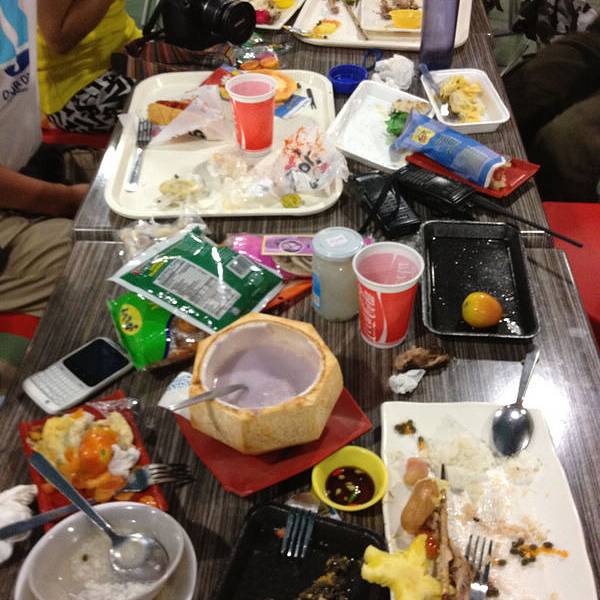 我们先从酒店打车到了这里,在一楼兑换了一些钱——这是一个相当漫长的过程,因为每张钞票的序列号都要记录下来——然后我们去吃了点东西。本想在超市里四处逛逛的,但要这么做的话就得把我们的包留下——在世界上任何地方的超市里都没见过这种情况!有很多餐厅可供选择,但都相当繁忙。打不到出租车,只有三轮车。