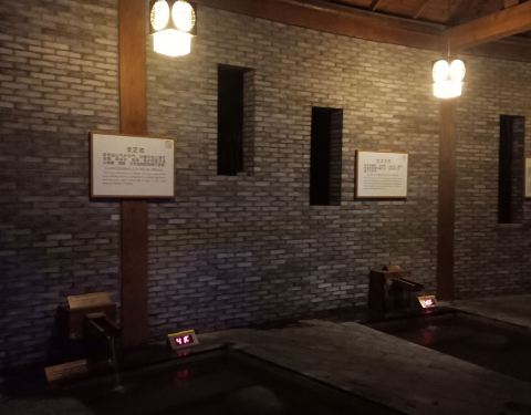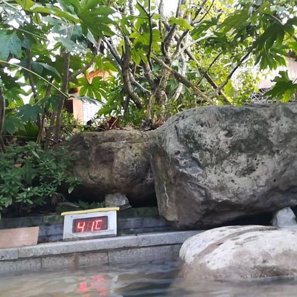 感觉这里布局设计还是花了心思的,每个温泉池既相通,又有相对的隐秘性,每个池边都有悬挂浴袍的木架,工作人员也是时刻可见的,每个池边都有当前的温度显示。