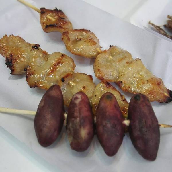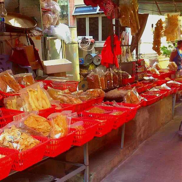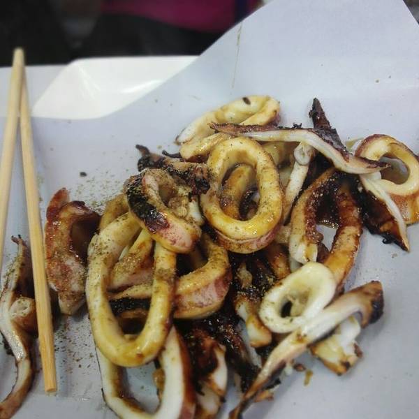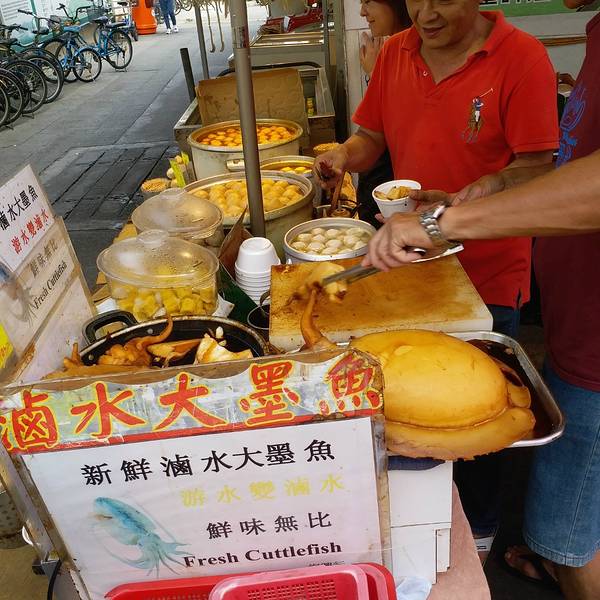 街道旁,有许多美味的小吃: 鸡屎藤,砵仔糕,豆腐花,茶果,鸡蛋仔,鱼蛋(拳头大小),烧烤...