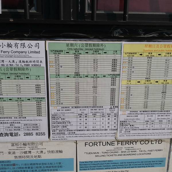 2. 深圳湾过关后坐B3巴士到屯门码头,直接坐船到达大澳码头,屯门到大澳只需要坐大概一个小时的船即可。(这一条是朋友走的路线)