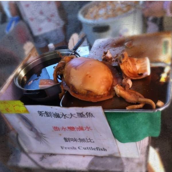大澳街上有很多小吃,像在村口有一家卖酱汁大墨鱼的摊档,一份50港币,吃起来很有嚼劲。在村中有一家做鸡蛋仔的店面,鸡蛋仔是用最传统的炭烧手法制作,很美味,享誉香港地区。