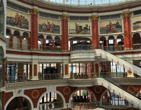金骆驼 ...主要目的,更体现了一种文化品味,徜徉其中,即便不购物,也可以游览大半天,让你得到赏心悦目的享受自从上海月星环球港开张后,就不断看到来自那里的引人注目的美片。虽然这个与国际接轨的超级商场离我家不远,但最近才有机会一识庐山真面目。这个被称为国内唯一欧式风格的shopping mall,占地面积非常大,分好几...自从上海月星环球港开张后,就不断看到来自那里的引人注目的美片。虽然这个与国际接轨的超级商场离我家不远,但最近才有机会一识庐山真面目。这个被称为国内唯一欧式风格的shopping mall,占地面积非常大,分好几个区域,如要仔细转,不是一时半会能转得过来。整个建筑设计精湛,明丽,奢华,有特色的欧式穹顶以及宽敞明亮的廊道设计,显得特别有气派,身入其中,假装到欧洲啦。在中央大厅,蓝色的圆形穹顶和围绕的西洋画,不由得让人联想起澳门的威尼斯人。其次这家shopping mall不仅仅以打造精品业态为主要目的,更体现了一种文化品味,徜徉其中,即便不购物,也可以游览大半天,让你得到赏心悦目的享受。商店的位置相当好,正好在上海三个区的交界处,具备了绝对的地域优势,难怪开业时间不长,已经有日益见长的人气。令人惊喜的就是,所有开设的餐饮、咖啡等供人们聚会用餐的场馆,都布置的十分精致有个性,极具艺术感染力,让你忍不住要坐下享受一番。充满欧式风情的装修布置在欧洲经常看到,现在不出国门,也能领略这样的风景,极大地满足了人们休闲享受的需求。走在宽敞的走廊,仿佛来到国外的艺术宫殿。商场除了有不少名牌精品店,还有很多有知名度但价格适中的中档品牌,可以满足更多人的需求。商店还有很多儿童游乐设施,适合带小朋友来玩。在商场四楼还专设有文化区域,其中包括4D影院、博物馆、美术馆、文化展区、演艺舞台区等,想必这里的活动也是丰富多彩的。虽然在那里时间不长,但作为上海人,深深感到,这个集购物、休闲、餐饮、娱乐为一体的高档场所为本地人添了一个好去处,也值得外地来沪人员去观赏游览。可喜的是这个场所的公共空间摆放了很多免费的供人休息的椅子,所以,即便不消费,也可以从从容容地享受一下这个“高、大、上”的舒适环境。