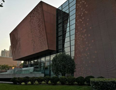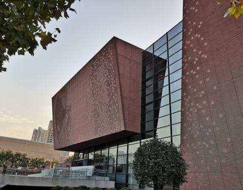 以前都没注意过交大正门的北边还有这么一个钱学森图书馆,外观很有艺术气息,隐隐的钱学森头像印在砖...以前都没注意过交大正门的北边还有这么一个钱学森图书馆,外观很有艺术气息,隐隐的钱学森头像印在砖红色的外墙上,几何图形的线条更彰显建筑的独特。