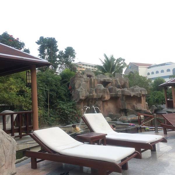 里面温泉池很少,环境也一般。如果是入住酒店的客户,一般都会赠送温泉票,自己去泡就不推荐了。更衣室没有灯,或者是灯光昏暗,挂钩也都是坏的,蚊子非常多,换个衣服的功夫已经咬的一腿的包了。